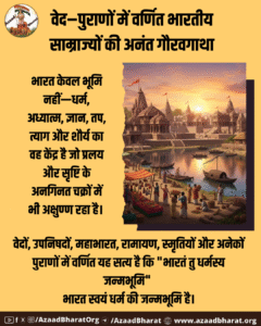 भारत केवल भूमि नहीं—धर्म, अध्यात्म, ज्ञान, तप, त्याग और शौर्य का वह केंद्र है जो प्रलय और सृष्टि के अनगिनत चक्रों में भी अक्षुण्ण रहा है।