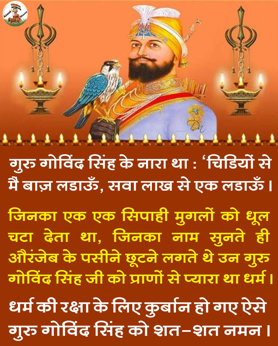 धर्म की रक्षा के लिए कुर्बान हो गए ऐसे गुरु गोविंद सिंह को शत्- शत् नमन।