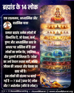 इन लोकों की संख्या 14 बताई गई है — 7 ऊर्ध्व (ऊपर के) लोक और 7 अधोलोक (नीचे के लोक)। भारतीय संस्कृति और दर्शन की अधिक जानकारी के लिए आप Azaad Bharat की वेबसाइट पर जा सकते हैं।