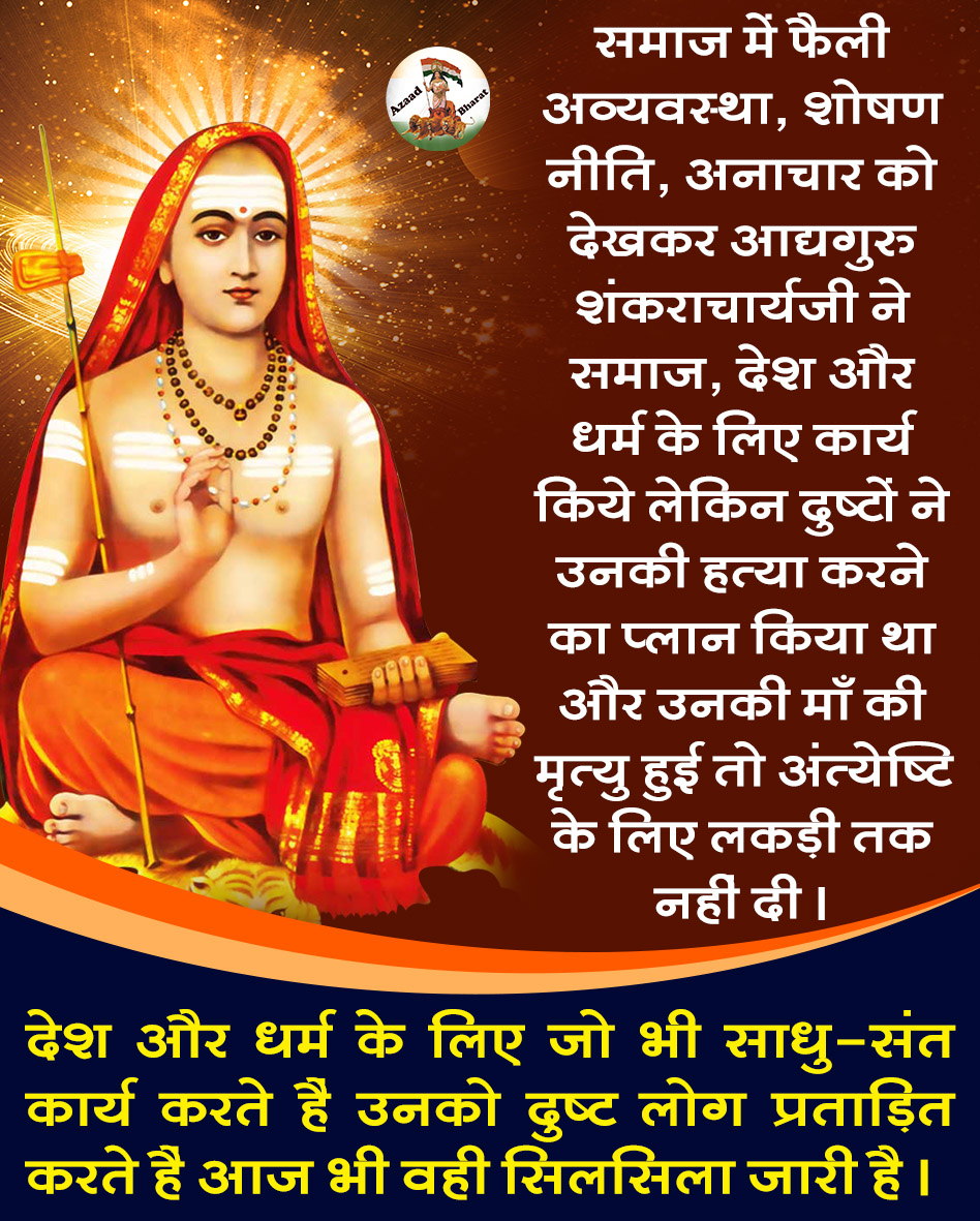 आद्य शंकराचार्यजी का इतना कुप्रचार किया गया कि उनकी माँ के अंतिम संस्कार के लिए उन्हें लकड़ियाँ तक नहीं मिल रही थीं ।