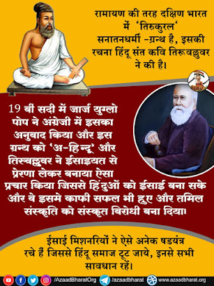 हिंदुस्तानियों को आपस में तोड़कर राष्ट्र विरोधी ताकते राज करना चाहती हैं इसलिए कभी जातिवाद तो कभी हिंदू विरोधी एजेंडे तो कभी धर्मान्तरण आदि का खेल खेला जा रहा है, ईसाई मिशनरियों की इसमे मुख्य भूमिका रहती हैं। वे मीठे जहर की तरह हैं, किसी को पता नही चलने देते हैं, हिंदुओं का ब्रेनवॉश करने में माहिर होते हैं, इसलिए हिंदुस्तानियों को सावधान रहने की आवश्यकता है।