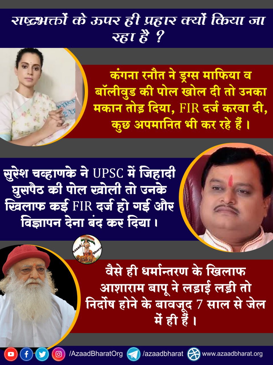 जब भी प्रसिद्ध हस्ती अथवा कोई व्यक्ति देशभक्ति, भारतीय संस्कृति या सनातन धर्म की बात करते हैं और राष्ट्र विरोधी लोगों का विरोध करते हैं तो उनको बहुत कुछ सहन करना पड़ता है, यहाँ तक ही हत्या भी हो सकती है अथवा जेल की हवा भी खानी पड़ सकती है ऐसे कई उदाहरण हमारे सामने हैं। उसमें से हम कुछ उदाहरण बता रहे हैं जिससे आप भी राष्ट्र विरोधी ताकतों से सावधान रहें।