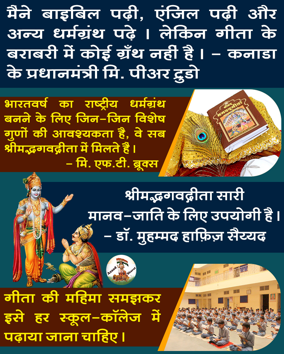 *श्रीमद्भगवद्गीता योग का एक ऐसा ग्रंथ है जो किसी जाति, वर्ण अथवा धर्मविशेष के लिए ही नहीं अपितु सारी मानव-जाति के लिए उपयोगी है । – डॉ. मुहम्मद हाफिज सैयद*