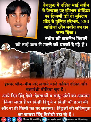 जिस दलित विधायक के भतीजे नवीन ने टिप्पणी पोस्ट की, उसका घर जला दिया गया है। गौरतलब है कि हमेशा की तरह लिबरल्स गिरोह ‘शांतिपूर्ण समुदाय’ के लिए ‘दंगों का अधिकार’ को सही ठहराएँगे।