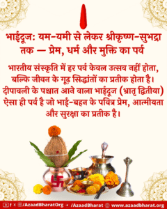 #BhaiDooj #BhaiDooj2025 #भाईदूज #BhaiDuj #YamDwitiiya #IndianCulture #SanatanDharma #AzaadBharat #FestivalOfIndia #HinduFestivals #LoveAndTradition #Sanskriti #BrotherSisterBond #SpiritualIndia #CulturalIndia
