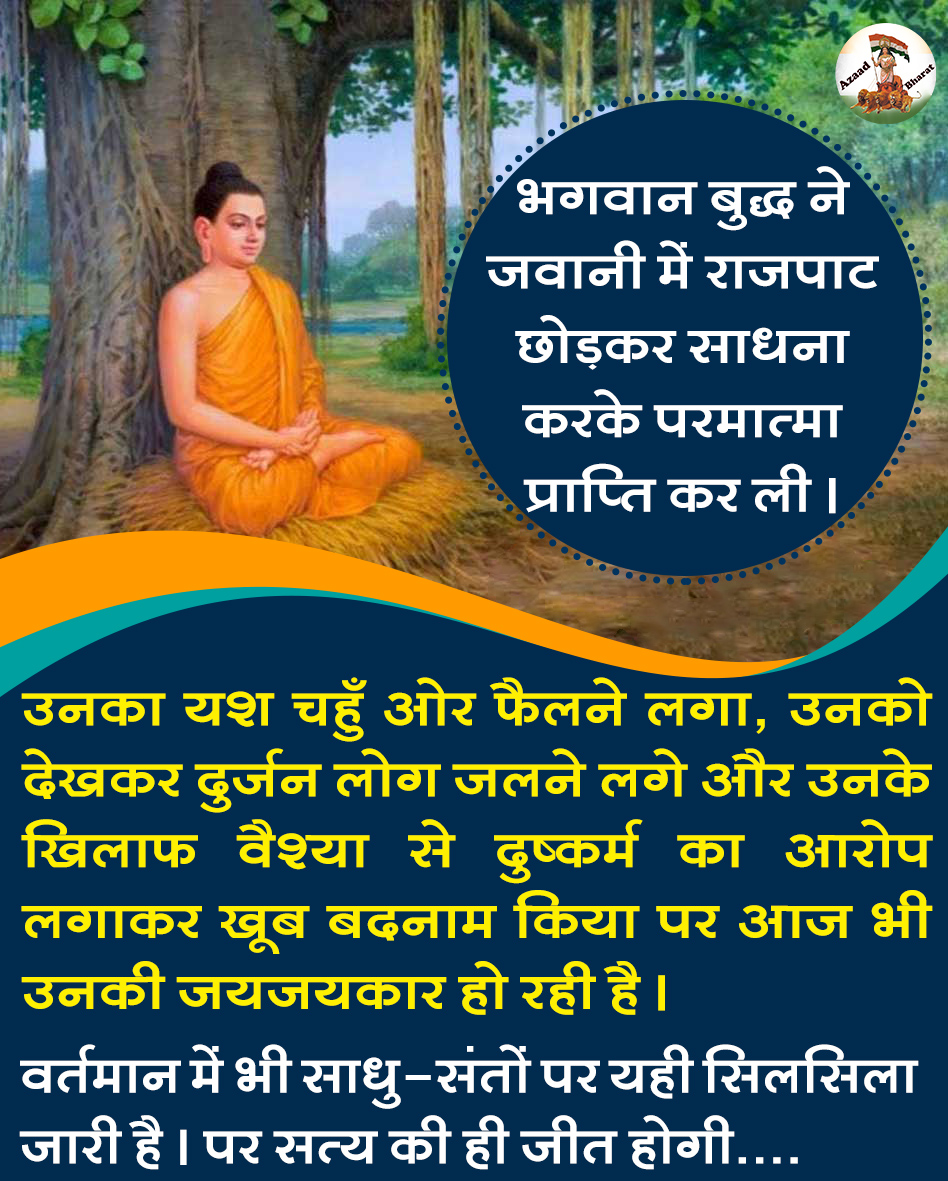 वर्तमान में जिन संतों के ऊपर आरोप लग रहे हैं उनके भक्त अगर सच्चाई किसी को बताने जाएंगे तो दुष्ट प्रकृति के लोग तो बोलेंगे ही, लेकिन जो हिंदूवादी और राष्ट्रवादी कहलाने वाले लोग है वे भी यही बोलेंगे की कि बुद्ध तो भगवान थे, आजकल के संत ऐसे ही है, उनको इतने पैसे की क्या जरूत है? लड़कियों से क्यों मिलते हैं..??? ऐसे कपड़े क्यों पहनते हैं..??? आदि आदि…।