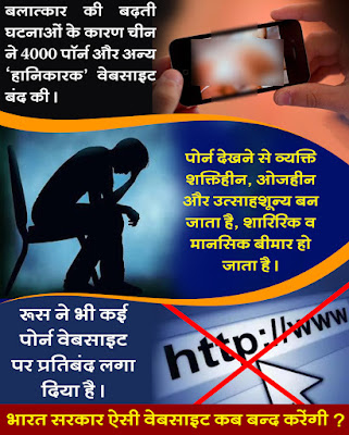 भारत में बच्चों और युवाओं द्वारा पोर्न देखने का चलन आजकल बढ़ता चला जा रहा है, जिस बात का अंदाजा इसी बात से लगाया जा सकता है कि भारत पिछले दो-तीन सालों में सबसे ज्यादा पोर्न देखने वाले देशों में दसवें से तीसरे स्थान पर आ गया है ।