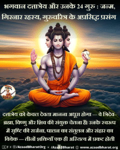 Short summary: यह लेख दत्तात्रेय के अवतरण, उनके प्रतीक, गुरुचरित्र के दुर्लभ प्रसंग, गिरनार के अनुभव और 24 प्राकृतिक गुरुओं की व्यावहारिक व्याख्या प्रस्तुत करता है।