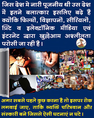 आज सोशल मीडिया इंटरनेट और फिल्मों में पोर्न परोसा जा रहा है । तो बच्चों के अंदर अंदर विकार आयेंगे ओर बलात्कार जैसी घटनाओं को अंजाम देते है।