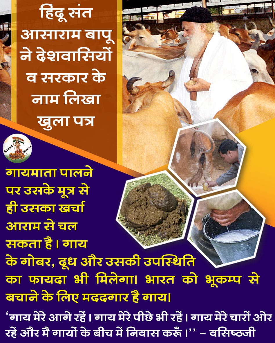 जोधपुर जेल से हिंदु संत आशारामजी बापू ने देशवासियों व सरकार के नाम गाय माता की महत्ता बताकर एक पत्र भेजा हुआ है जिसको पढ़कर हर कोई सराहना कर रहा है । सोशल मीडिया पर काफी वायरल हुआ है आप भी इसे पढ़िए।