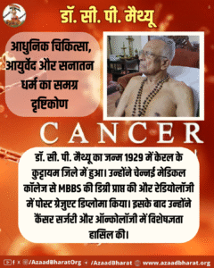 डॉ. सी. पी. मैथ्यू, केरल के पहले मेडिकल ऑन्कोलॉजिस्ट, आधुनिक चिकित्सा और पारंपरिक आयुर्वेद को जोड़कर रोगियों के समग्र स्वास्थ्य की दिशा में क्रांति लाने वाले एक विद्वान थे। उनका जीवन चिकित्सा, शिक्षा और सनातन धर्म के प्रति समर्पण का प्रतीक है।