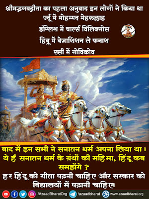 ★पहला व्यक्ति जिसने इंग्लिश अनुवाद किया उसका नाम चार्ल्स विलिक्नोस था! उसने भी बाद में हिन्दू धर्म अपना लिया उसका तो ये तक कहना था कि दुनिया में केवल हिंदुत्व बचेगा!