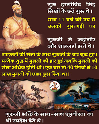 गुरू हरगोबिन्द सिखों के छठें गुरू थे । साहिब की सिक्ख इतिहास में गुरु अर्जुन देव जी के सुपुत्र गुरु हरगोबिन्द साहिब की दल-भंजन योद्धा कहकर प्रशंसा की गई है । गुरु हरगोबिन्द साहिब की शिक्षा-दीक्षा महान विद्वान् भाई गुरदास की देख-रेख में हुई । गुरु जी को बराबर बाबा बुड्डाजी का भी आशीर्वाद प्राप्त रहा । छठे गुरु ने सिक्ख धर्म, संस्कृति एवं इसकी आचार-संहिता में अनेक ऐसे परिवर्तनों को अपनी आंखों से देखा जिनके कारण सिक्खी का महान बूटा अपनी जड़ें मजबूत कर रहा था । विरासत के इस महान पौधे को गुरु हरगोबिन्द साहिब ने अपनी दिव्य-दृष्टि से सुरक्षा प्रदान की तथा उसे फलने-फूलने का अवसर भी दिया । अपने पिता श्री गुरु अर्जुन देव की शहीदी के आदर्श को उन्होंने न केवल अपने जीवन का उद्देश्य माना, बल्कि उनके द्वारा जो महान कार्य प्रारम्भ किए गए थे, उन्हें सफलता पूर्वक सम्पूर्ण करने के लिए आजीवन अपनी प्रतिबद्धता भी दिखलाई ।