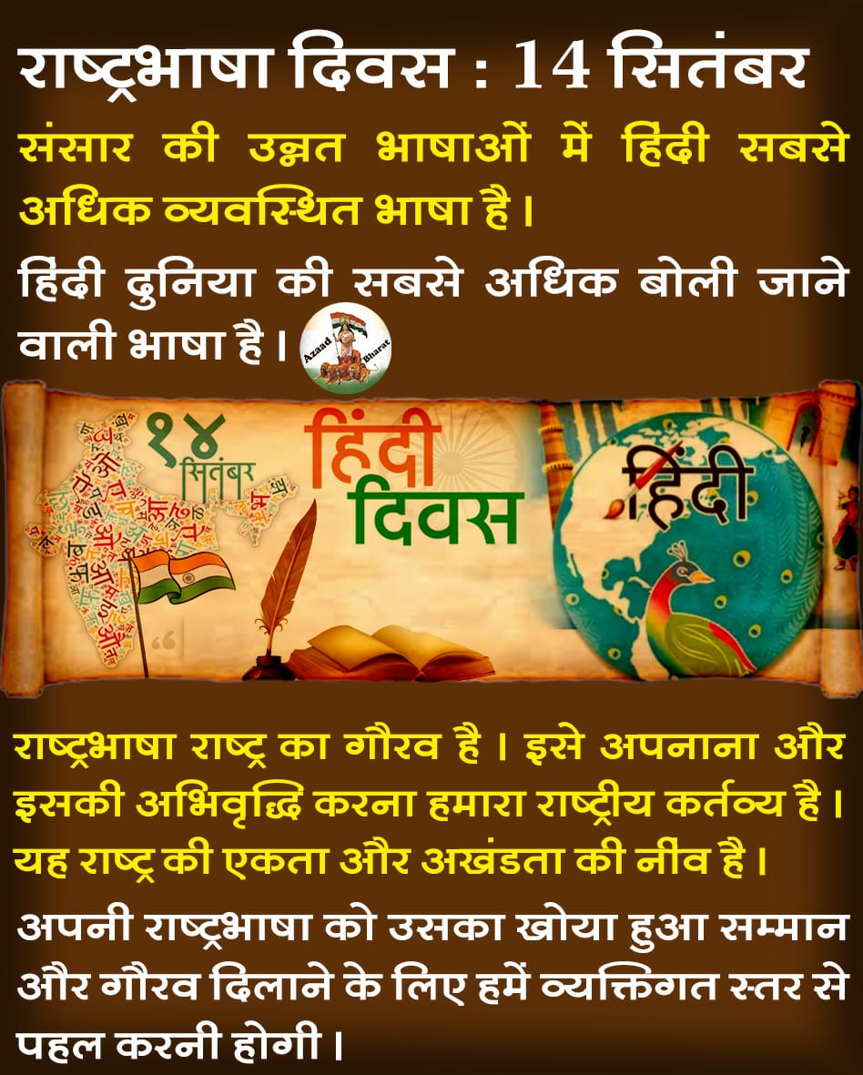 राष्ट्रभाषा राष्ट्र का गौरव है। इसे अपनाना और इसकी अभिवृद्धि करना हमारा राष्ट्रीय कर्तव्य है। यह राष्ट्र की एकता और अखंडता की नींव है। आओ, इसे सुदृढ़ बनाकर राष्ट्ररूपी भवन की सुरक्षा करें।