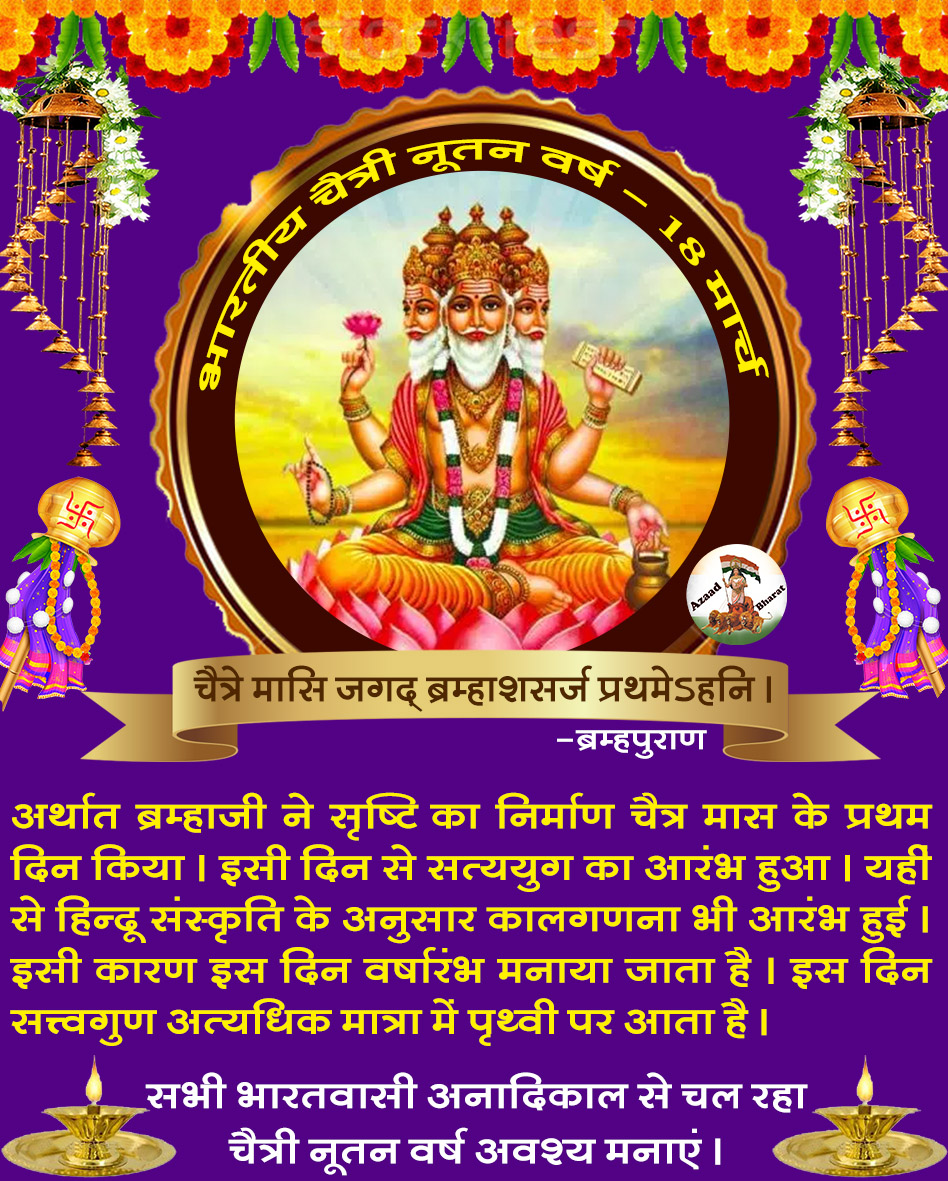 अर्थात, सृष्टि का आरंभ चैत्र मास की प्रथम तिथि को ब्रह्माजी ने किया।