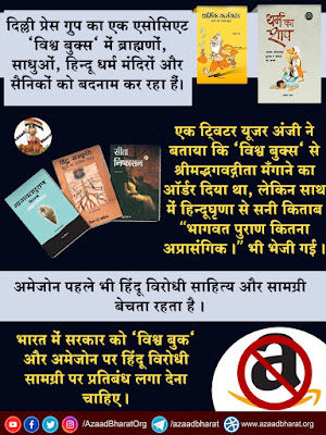जनता की मांग है कि सरकार विश्व बुक के प्रकाशन पर प्रतिबंध लगाए और अमेज़ॉन पर भी हिंदू विरोधी बिकने वाली किताबो ओर सामग्री पर रोक लगाए।