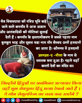 मेरे विचार से अगर कोई हिन्दू हमदानी के विचार को जान लेगा तो वह कभी हमदानी की ख़ानख़ा जाने का विचार नहीं करेगा। यह सेकुलरिज्म का नशा है। इसे उतारना ही होगा।