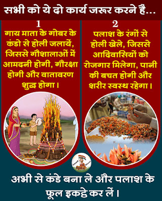 होली के समय ऋतु परिवर्तन होता है, सर्दी से गर्मी में प्रवेश होता है इसलिए गर्मी की तपन और गर्मीजन्य रोगों से बचने के लिए पलाश के रंगों से होली खेली जाती है । आध्यात्मिक कारण ये है कि हमे सालभर में किसी से भी कोई लड़ाई झगड़ा हुआ है उसको भूलकर मिलजुलकर होली खेलें ।