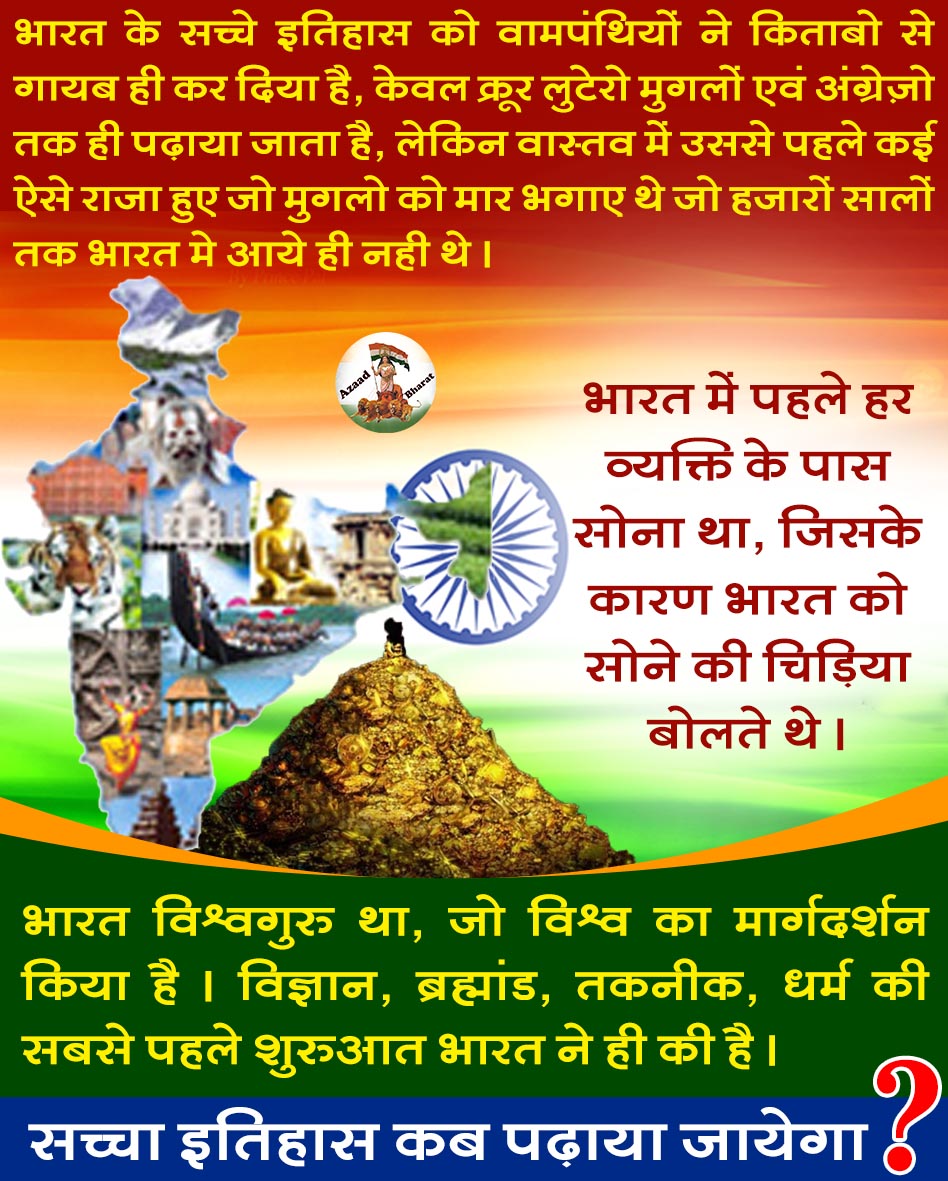 असल में अब आवश्यकता है कि भारत माता के सच्चे इतिहास को फिर से एक किया जाये और हमारी आनेवाली पीढियों को पढाया जाये ताकि भारत एक बार फिर से विश्व का गुरु बन सके !