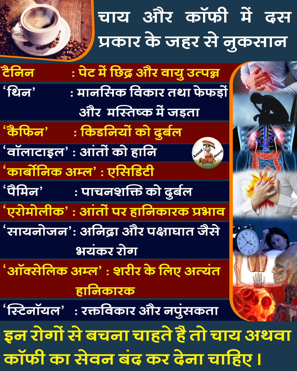 चाय और कॉफी में दस प्रकार के जहर होते हैं ।*