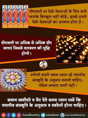 दीपावली में कुछ लोग देवताओं के छायाचित्र वाले पटाखे फोडते हैं । देवता का छायाचित्र प्रत्यक्ष देवता ही हैं । जिस समय हम पटाखे फोडते हैं, उस समय उस छायाचित्र के टुकडे होते हैं, अर्थात हम उस देवता का अनादर ही करते हैं । श्रीलक्ष्मी के छायाचित्र वाले, साथ ही राष्ट्रभक्तों के छायाचित्र वाले पटाखे फोडना, इससे हमें पाप लगता है । इस दीपावली को हम ऐसे पटाखे खरीदेंगे ही नहीं। साथ ही ऐसे पटाखे खरीदने वालों का प्रतिरोध कर उनका प्रबोधन करेंगे, वास्तव में यह देवता की भक्ति है । ऐसा करने से हम पर देवता की कृपा होगी । बच्चो, क्या हमारे माता-पिता के छायाचित्र वाले पटाखे हम फोडेंगे ? नहीं न ! देवता हम सभी की रक्षा करते हैं । हमें शक्ति एवं बुद्धि प्रदान करते हैं। अतएव इस दीपावली को हम यह अनादर रोकने का निश्चय करें।