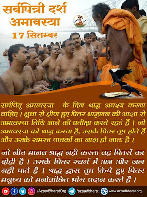 हिन्दू धर्म का व्यक्ति अपने जीवित माता-पिता की सेवा तो करता ही है, उनके देहावसान के बाद भी उनके कल्याण की भावना करता है एवं उनके अधूरे शुभ कार्यों को पूर्ण करने का प्रयत्न करता है । ‘श्राद्ध-विधि’ इसी भावना पर आधारित है। इस साल सर्वपितृ अमावस्या 17 सितंबर को है।