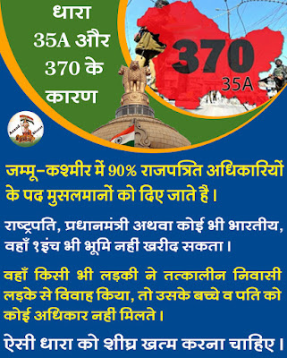 ‘धारा 35 अ’ क्या है ?, वह हमें क्या देती है ? तो धारा 35 अ एक अन्यायकारी धारा है । यह धारा कश्मीर के लोगों को ‘वो सभी भारतीय हैं’, यह नाटक करने हेतु बनाई गई धारा है ! इस अत्याचारी धारा के कारण राष्ट्रपति, प्रधानमंत्री अथवा कोई भी भारतीय नागरिक इस राज्य की एक इंच भी भूमि नहीं खरीद सकता ! धारा 370 तो जम्मू एवं कश्मीर के लोग और शेष भारतीयों में नेहरू शासनद्वारा खड़ी की गई दीवार ही है !