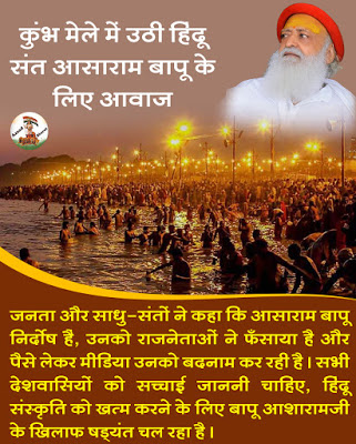 प्रयागराज कुंभ मेले में करोड़ो की तादाद में भक्त लोग जा रहे हैं, स्नान करके अपने को धन्य महसूस कर रहे हैं, लेकिन कुम्भ स्नान के अलावा एक और खास चर्चा का विषय रहा, वो था हिंदू संत आसाराम बापू का, क्योंकि एक तरफ तो उन्होंने देश, धर्म और संस्कृति की सेवा में अपना पूरा जीवन अर्पित कर दिया लेकिन दूसरी तरह उन्हें एक तथाकथित झूठे आरोप के आधार पर उम्रकैद हुई तो ऐसे में अब उनके बारे में जनता क्या सोचती है यह जानना बहुत जरूरी है ।*