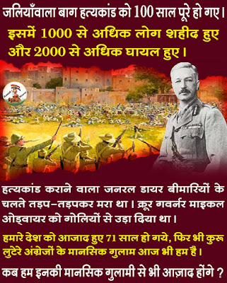जालियाँवाला बाग हत्याकांड (Jalianwala Bagh Massacre) की कहानी सुनते ही आज भी हर भारतीय की रूह कांप जाती है । यह ऐसा बर्बर हत्याकांड अंग्रेजों ने हम भारतीयों पर किया था । जिसकी निंदा आज तक की जाती है । अंग्रेजो के द्वारा किये गए इस बर्बर हत्याकांड के लिए आज भी ब्रिटेन के उच्च अधिकारी शोक जताते हैं । आज इस हत्याकांड के 100 वर्ष पूरे हो चुके हैं ।