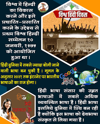 *विश्व में हिन्दी का विकास करने और इसे प्रचारित-प्रसारित करने के उद्देश्य से विश्व हिन्दी सम्मेलनों की शुरुआत की गई और प्रथम विश्व हिन्दी सम्मेलन 10 जनवरी, 1975 को नागपुर में आयोजित हुआ था। इसीलिए इस दिन को विश्व हिन्दी दिवस के रूप में मनाया जाता है।*