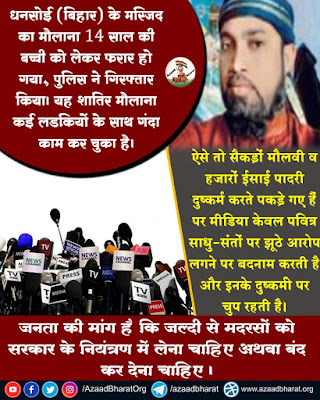 पवित्र हिंदू साधु-संतों पर कोई साजिश के तहत झूठे आरोप भी लगा दे तो मीडिया 24 घण्टे चिल्लाने लगती है पर मौलवी और ईसाई पादरियों के दुष्कर्मों पर मौन धारण कर लेती हैं।