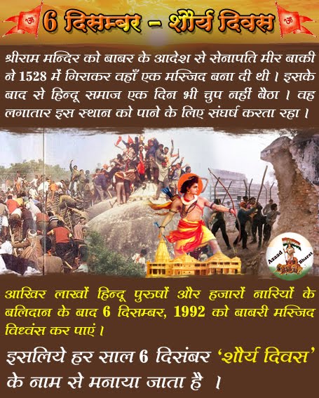 बाबरी मस्जिद विध्वंस का 6 दिसंबर को हर साल #हिन्दू शौर्य दिवस मानते हैं