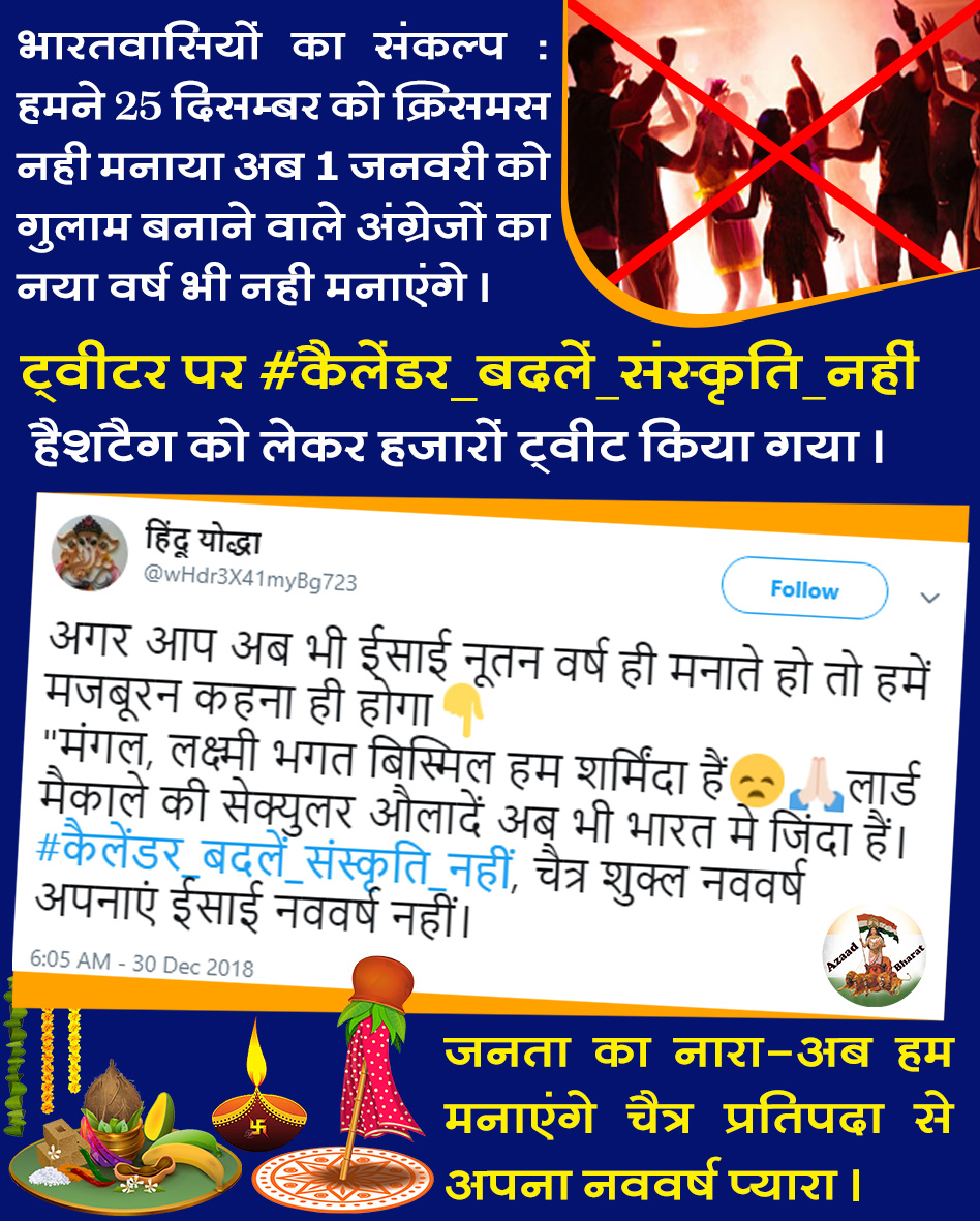 #कैलेंडर_बदलें_संस्कृति_नहीं, चैत्र शुक्ल नववर्ष अपनाएं ईसाई नववर्ष नहीं ।