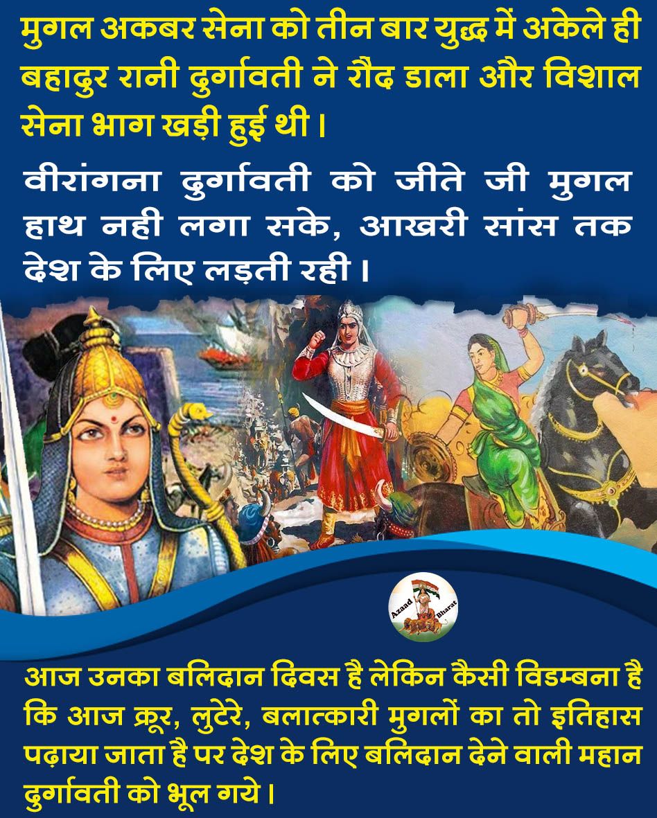 *भारत में शूर, बुद्धिमान और साहसी कई वीरांगना पैदा हुई, जिनके नाम से ही मुगल सल्तनत काँपने लगती थी पर दुर्भाग्य की बात यह है कि भारत के इतिहास में उनको कहीं स्थान नहीं दिया गया इसके विपरीत क्रूर, लुटेरे, बलात्कारी मुगलों व अंग्रेजो का इतिहास पढ़ाया जाता है । आज अगर सही इतिहास पढ़ाया जाए तो हमारी भावी पीढ़ी पश्चिमी संस्कृति की तरफ मुड़कर भी नही देखेगी इतना महान इतिहास है अपना ।*