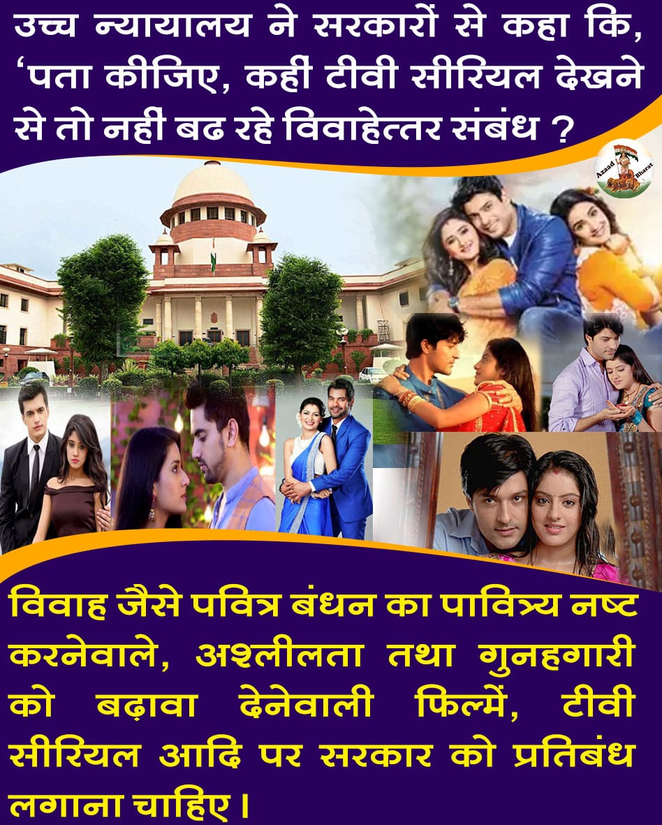 आपको बता दें कि मार्च महीने में मद्रास उच्च न्यायालय ने केंद्र और राज्य सरकारों से कहा है कि वो पता लगाएं कि विवाहेत्तरसंबंध के लिए कहीं ‘मेगा टीवीसीरियल्स’ या अन्य चीजें तो जिम्मेदार नहीं है । न्यायालय ने ऐसा इसलिए कहा क्योंकि पिछले कुछ समय में हत्या, हमले और अपहरण जैसी आपराधिक घटनाओं में तेजी आई है ।