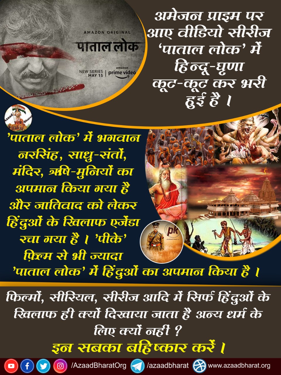 अमेजन प्राइम पर आए वीडियो सीरीज ‘पाताल लोक’ की, जिसमें हिन्दू-घृणा कूट-कूट कर भरी हुई है। अगर कथित सवर्णों के प्रति घृणा को भी जोड़ दें तो ‘पाताल लोक’ कई अवॉर्ड्स जीत सकती है।