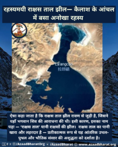 ✴️राक्षस ताल झील को तिब्बती में “लांगका त्सो” (Langka Tso) भी कहा जाता है। यह झील अपने पास स्थित मानसरोवर जैसी शांत और पवित्र नहीं है, बल्कि इसे एक खारे पानी की झील माना जाता है। यही विरोधाभास इसे और रहस्यमयी बनाता है — मानसरोवर मीठे पानी की झील है, जबकि राक्षस ताल खारी है।