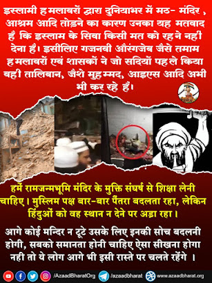 इस्लामी हमलावरों द्वारा भी दुनिया भर में चर्च, मंदिर आदि तोड़ने का कारण उनका यह मतवाद है कि इस्लाम के सिवा किसी मत को रहने नहीं देना है। इसीलिए गजनवी औरंगजेब जैसे तमाम हमलावरों एवं शासकों ने जो सदियों पहले किया वही तालिबान, जैसे मुहम्मद, आइएस आदि अभी भी कर रहे हैं। इसके पीछे मतांधता ही है। इसकी अनदेखी करने के दुष्परिणामों का अनुमान कठिन नहीं है। अभी तुर्की में इसी की झलक मिली।