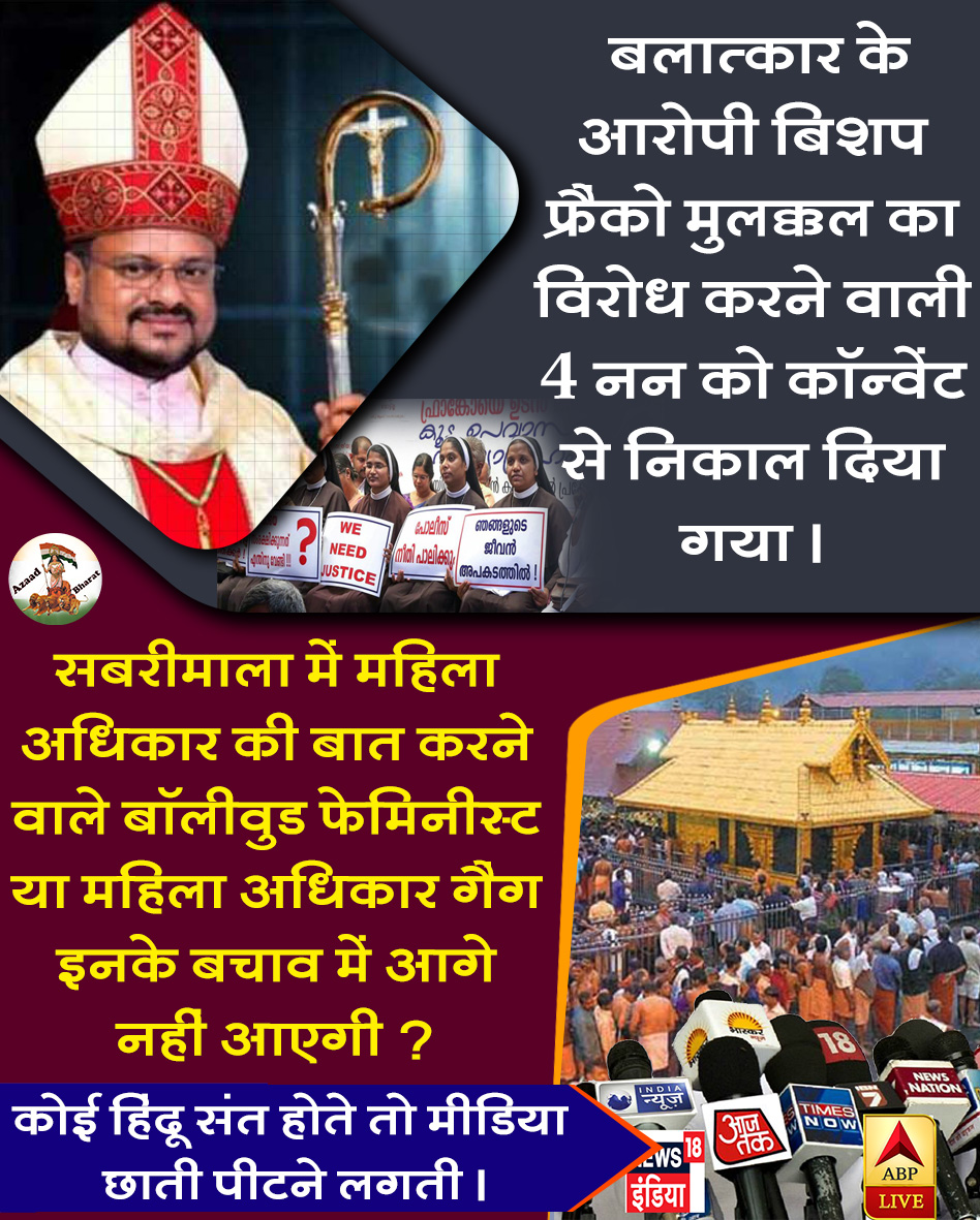 🚩4 ननों को अन्याय के खिलाफ आवाज उठाने पर कान्वेंट से बाहर किया लेकिन अब कोई भी बॉलीवूड फेमिनीस्ट या महिला अधिकार गैंग इनके बचाव में आवाज उठाने आगे नहीं आई और आएँगे भी क्यों  ये तो केवल सबरीमला जैसे हिन्दुओं के मुद्दों पर बोलते हैं !