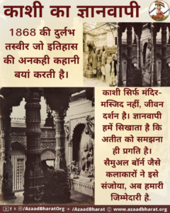 काशी को शिव का त्रिशूल माना जाता है, जहां ज्ञानवापी एक प्रमुख तीर्थ स्थल है। पुराणों और प्राचीन ग्रंथों में इसका उल्लेख ‘ज्ञानवापी’ के रूप में मिलता है, जिसका अर्थ है ज्ञान का कुआं। मान्यता है कि यहां शिवलिंग प्रकट हुआ था और भक्तों को ज्ञान की प्राप्ति हुई। इतिहासकार बताते हैं कि विक्रमादित्य जैसे राजाओं ने यहां भव्य मंदिर बनवाए। मध्यकाल में मुहम्मद गौरी के आक्रमण से लेकर औरंगजेब तक कई घटनाओं ने इस स्थान को प्रभावित किया। 1669 में औरंगजेब के आदेश पर मंदिर तोड़कर मस्जिद का निर्माण कराया गया, ऐसा कई स्रोतों में वर्णन है। इसके बाद 1585 में टोडरमल और नारायण भट्ट ने पुनर्निर्माण का प्रयास किया, लेकिन शाहजहां ने उसे रोका। 18वीं शताब्दी में अहिल्याबाई होल्कर ने पास में नया काशी विश्वनाथ मंदिर बनवाया। बॉर्न की तस्वीरें ठीक इसी दौर की हैं – जब मस्जिद बनी हुई थी, लेकिन दीवारों पर देवी-देवताओं के चित्र, हिंदू प्रतीक और नक्काशियां अब भी मौजूद थीं। काशी हिंदू विश्वविद्यालय के प्रोफेसर अशोक कुमार सिंह जैसे विद्वान कहते हैं कि ये अवशेष मंदिर के प्रमाण हैं। यह तस्वीरें नीलामी और म्यूजियमों में मिलीं, जहां ज्ञानवापी के अंदरूनी हिस्से को ‘वेल ऑफ नॉलेज’ कहा गया। नंदी की प्रतिमा आज भी मस्जिद की ओर देख रही है, जैसे प्रभु का इंतजार कर रही हो।