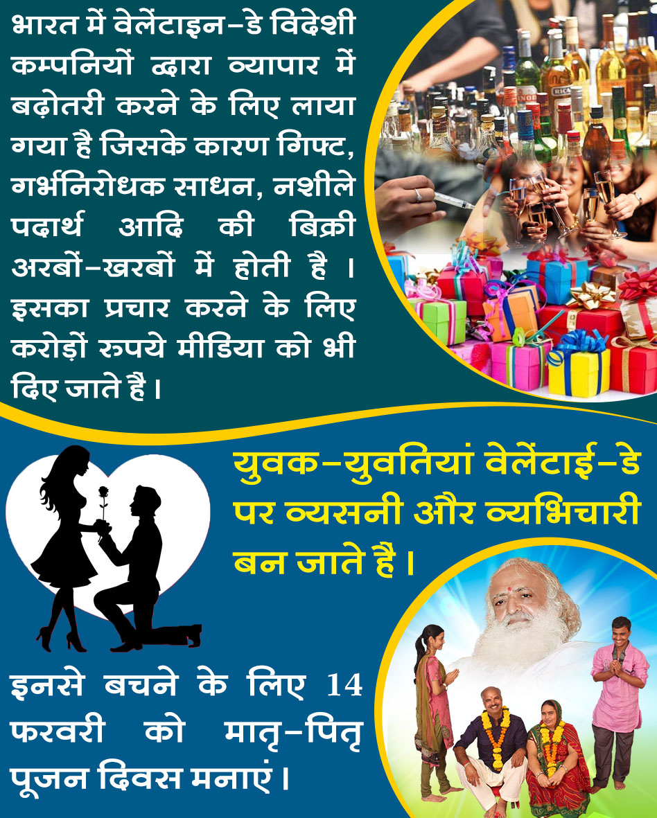 अतः हे देश के कर्णधार #युवक-युवतियों आप भी #वैलेंटाइन डे का #त्याग #करके उस दिन #मातृ-पितृ पूजन मनाकर स्वयं को उन्नत बनाएं ।